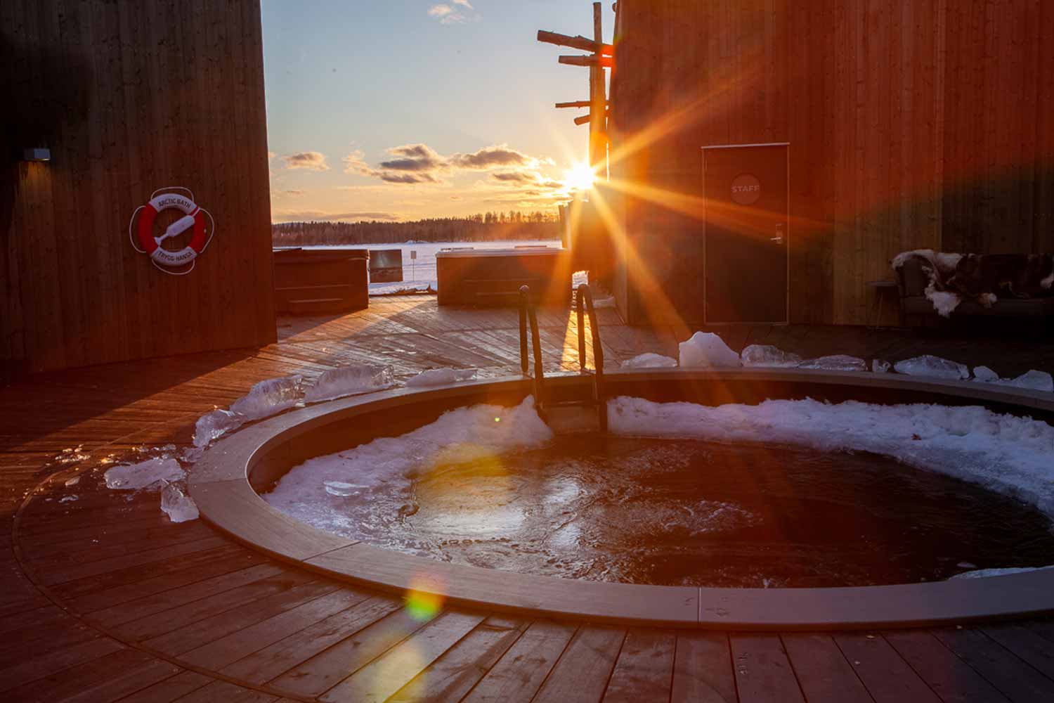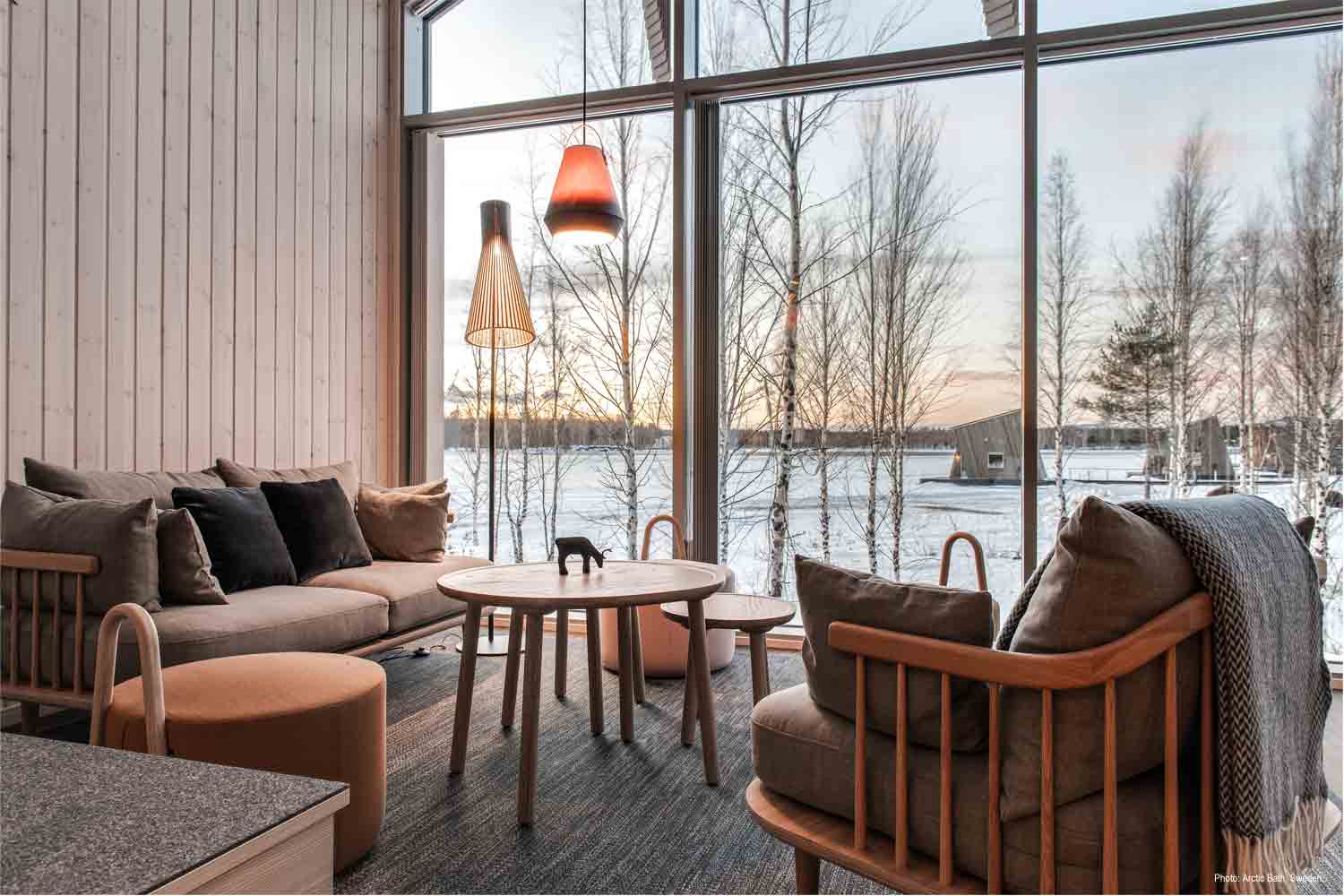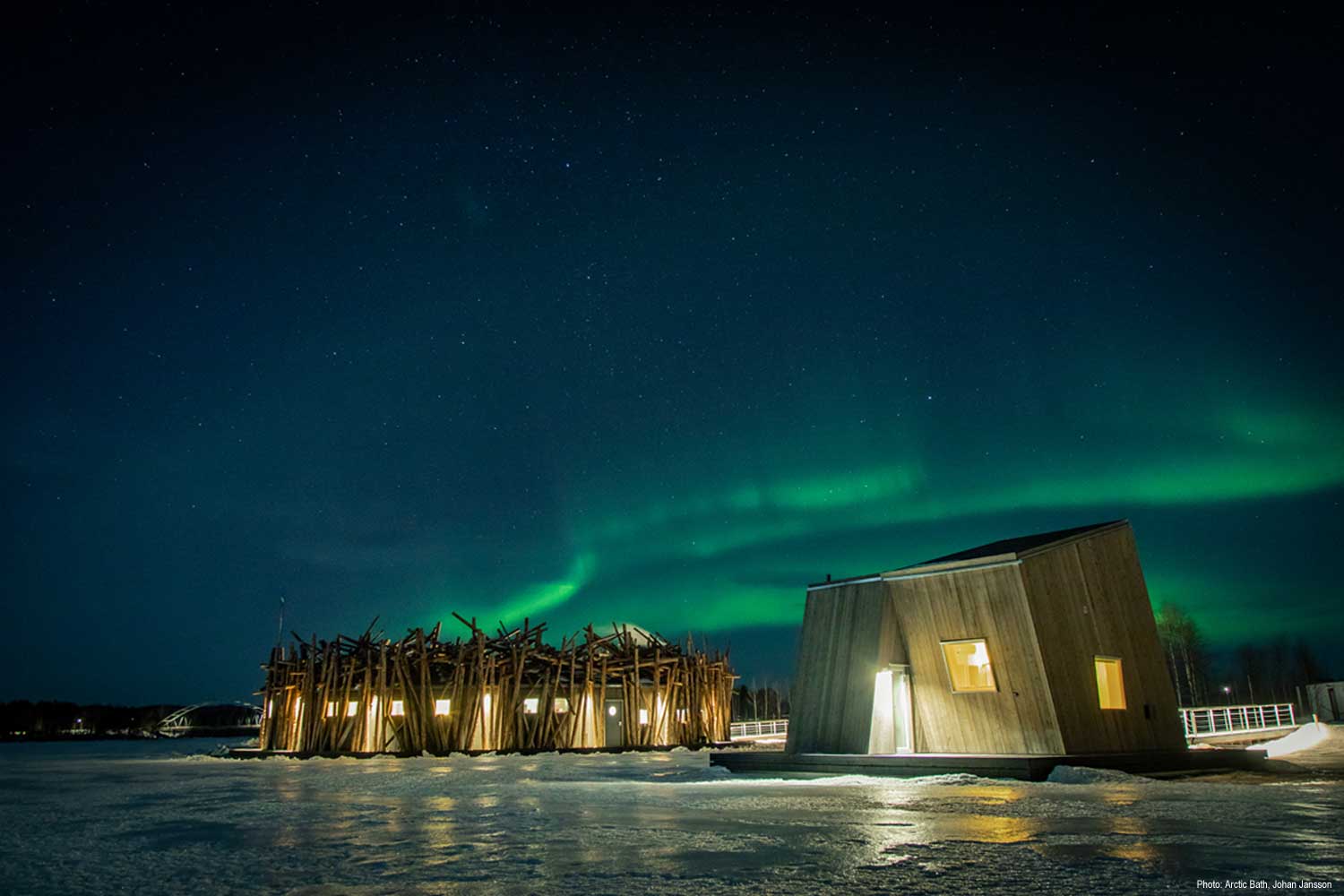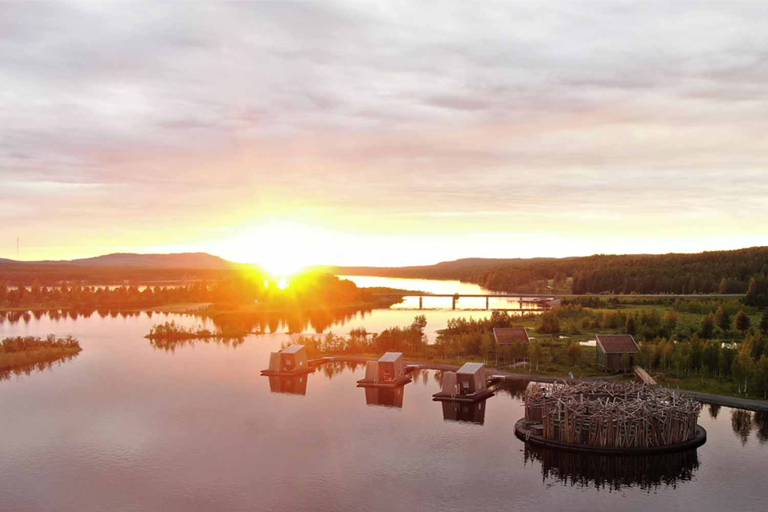 Arctic Bath is een uniek hotel aan de Lule-rivier, stroomafwaarts van Bodträskfors, die met de seizoenen verandert. Van zomerzwemmen onder de middernachtzon tot winterse noorderlichtuitzichten, de aantrekkingskracht ligt in de natuur, licht en het Arctische klimaat. Het hotel drijft op de rivier, ontworpen als eerbetoon aan de historische houttransporttraditie.